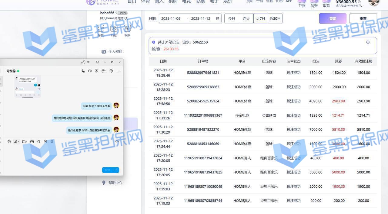 2、鉴黑担保网维权专员联系该平台相关负责人核实情况,对方表示此会员在电竞游戏中存在异常行为,故扣除异常所得,维权专员让其提供违规厅方资讯进行复查,对方无法提供后拒绝更多交涉沟通,可见是针对盈利较多不愿出款的说辞,可判断黑平台!!