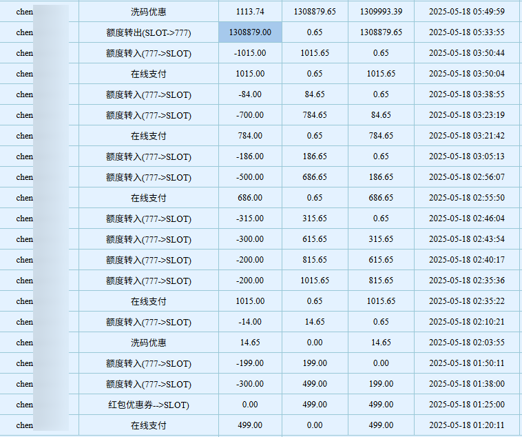 chen****18日刚注册,查阅其投注记录,又是电子大爆,