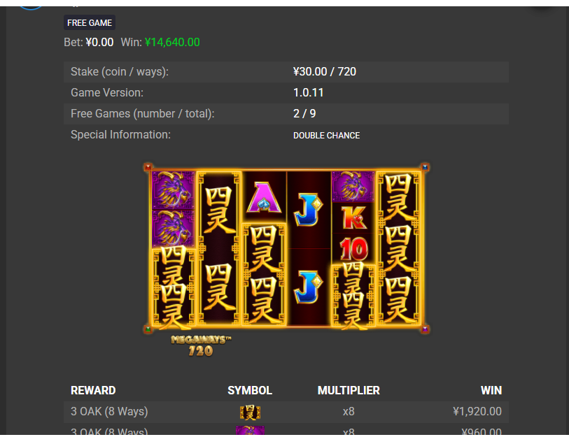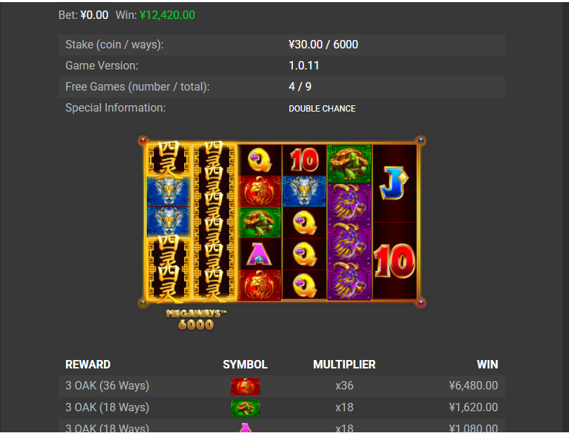 仅试玩不到十分钟便锁定【四灵Megaways】,抱着“先试试看”的心态投入